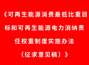 《可再生能源消費(fèi)最低比重目標(biāo)和可再生能源電力消納責(zé)任權(quán)重制度實(shí)施辦法(征求意見稿)》公開征求意見